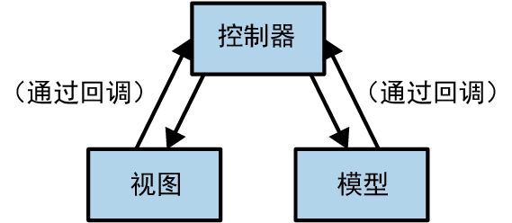 如图 14-3 所示,我们以模型-视图-控制器设计模式(简称 MVC)为例。对于用户界面的每个元素,MVC 框架都会创建 3 个对象:表示该 UI 元素状态的 模型、负责其外观的 视图 和处理用户交互的 控制器。多年来,MVC 模式已经出现了无数变体,但总体思路仍是 3 个对象以某种方式分担了 UI 的职责。