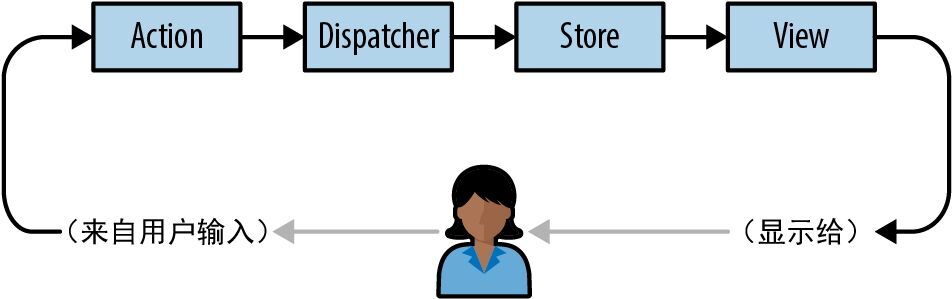 图 14-4:MVC 的替代方案——Flux 架构